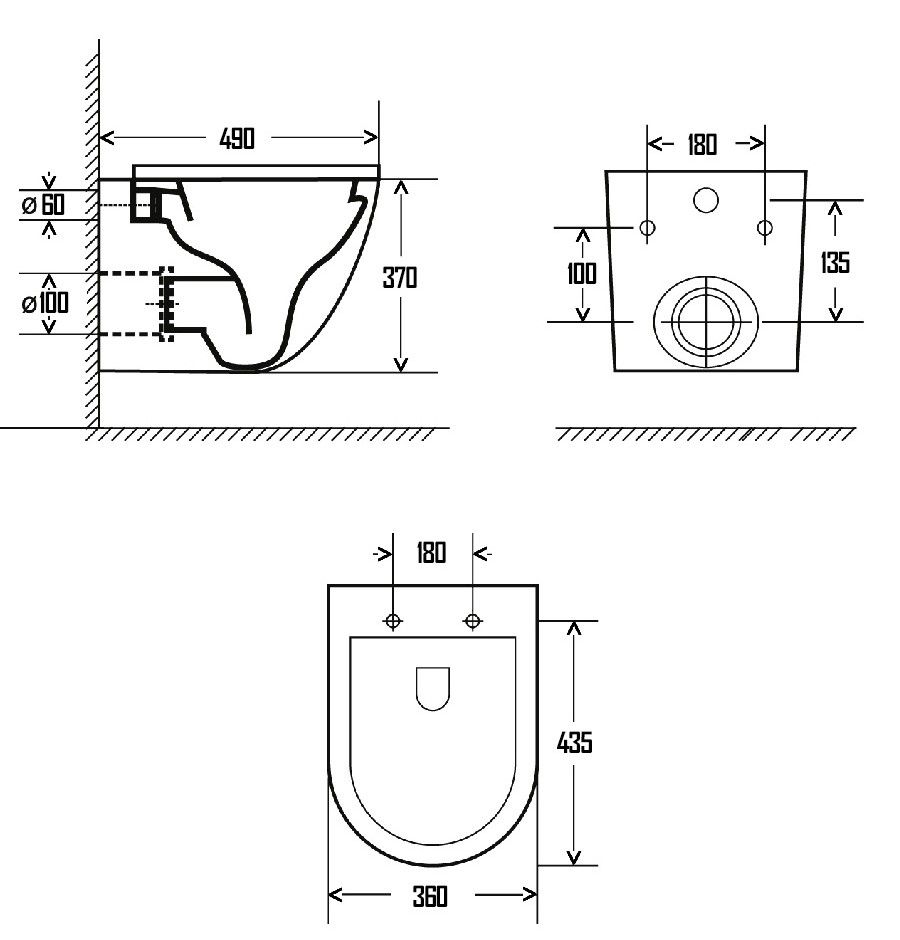 Подвод воды:определяется системой инсталляции
