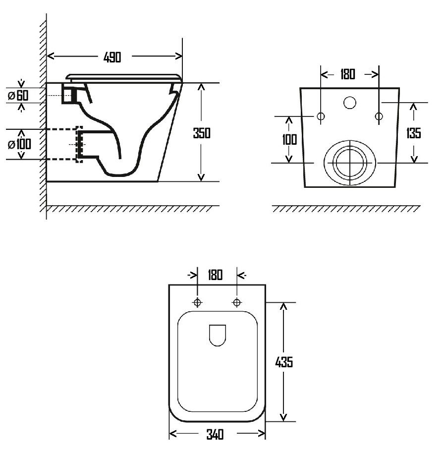 Подвод воды:определяется системой инсталляции