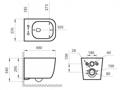 Подвод воды:определяется системой инсталляции
