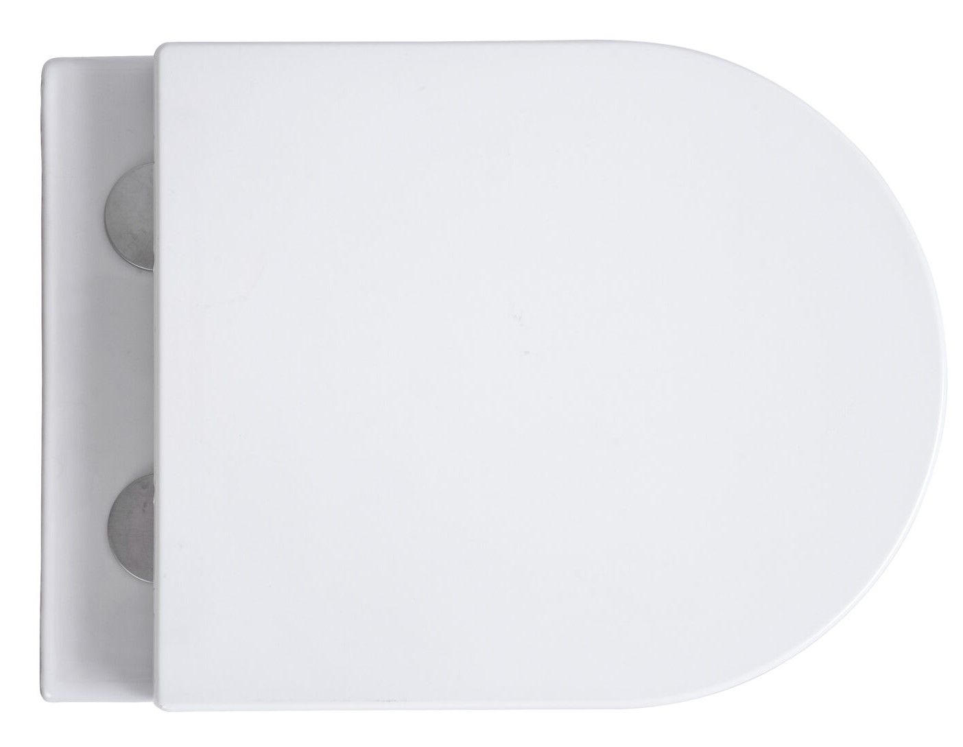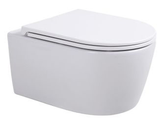 Подвесной безободковый унитаз с системой скрытого монтажа, крышкой-сидением из дюропласта с функцией soft-close и quick release.
