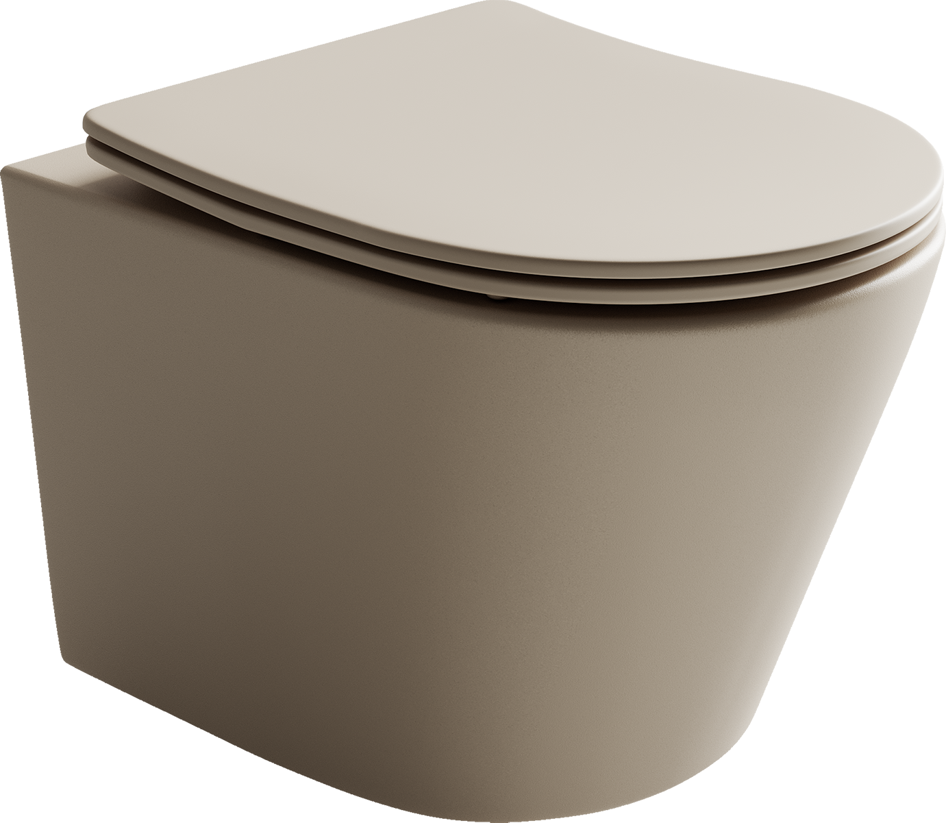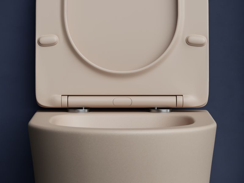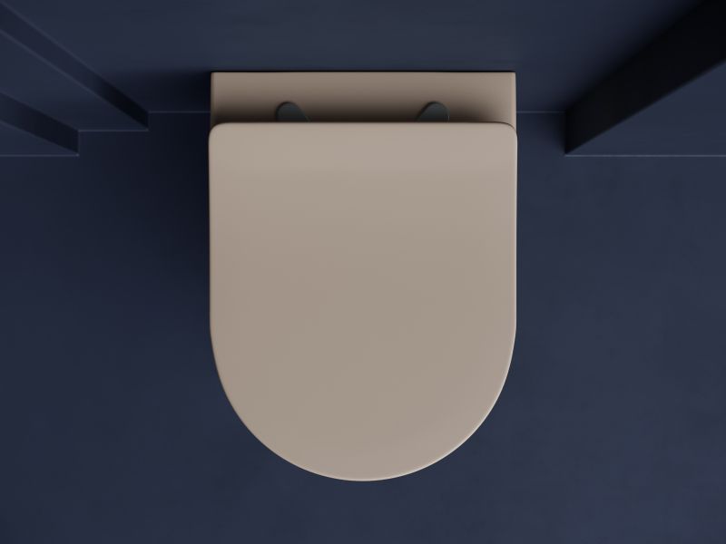 Подвесной унитаз Balearica Rimless (цвет Капучино Матовый), глубокий смыв, с крепежом для полностью скрытого монтажа, ультра тонким с сидением и крышкой с функцией плавного закрытия, дюропласт