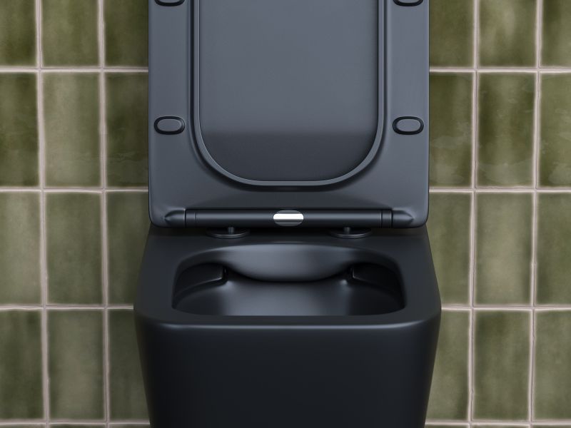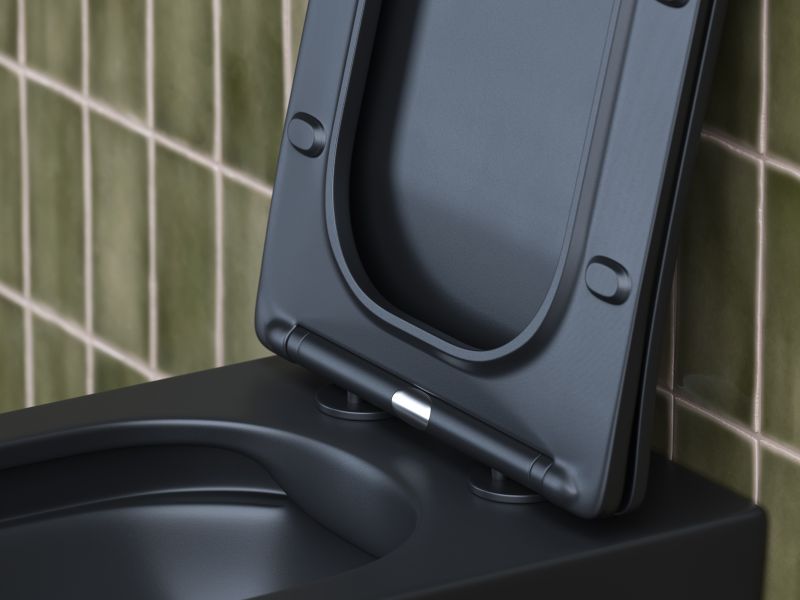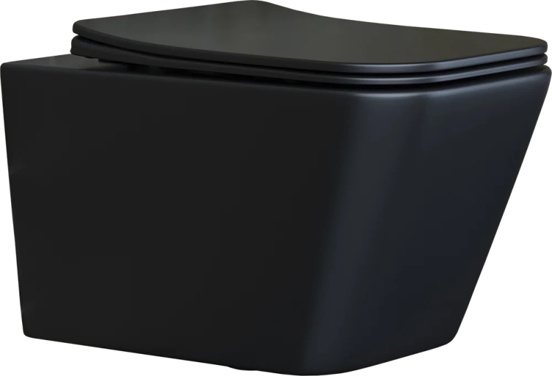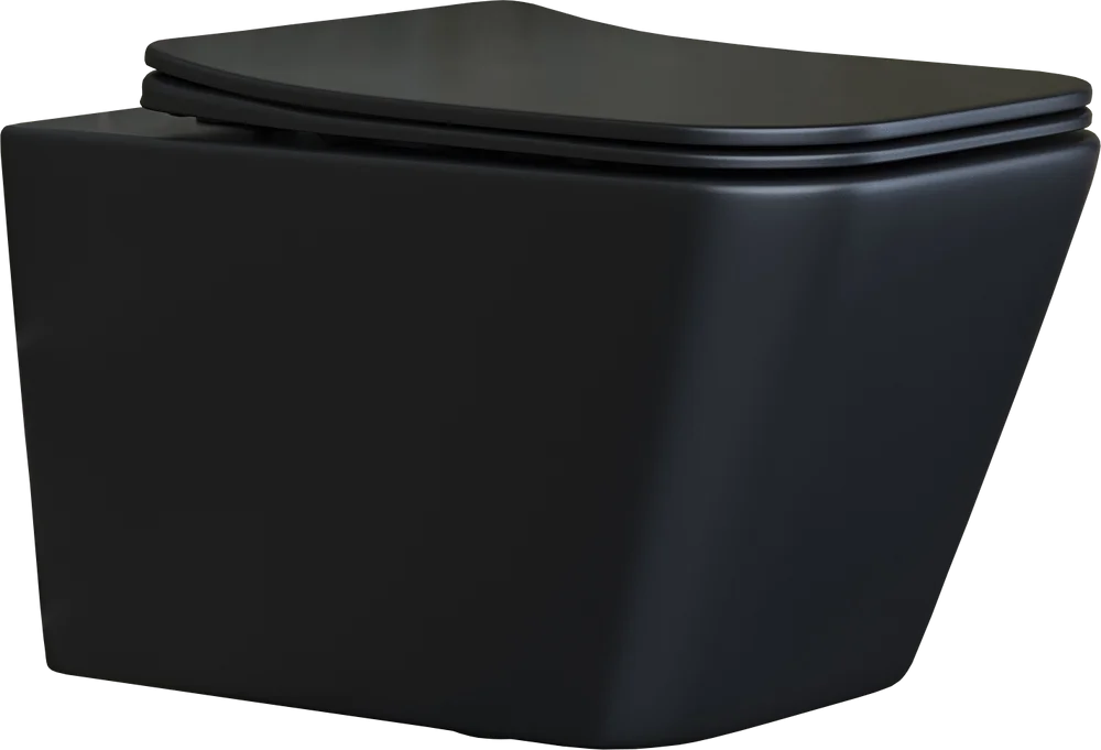 Подвесной унитаз Metric Rimless, глубокий смыв, с крепежом для полностью скрытого монтажа, ультра тонким с сидением и крышкой с функцией плавного закрытия, дюропласт, матовый черный
