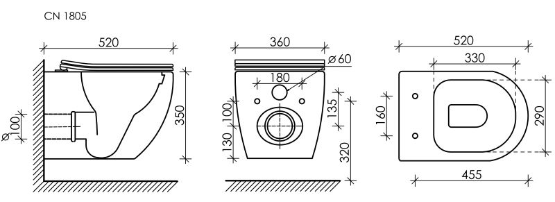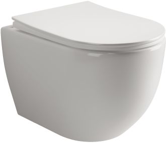 Подвесной унитаз Mia Rimless, глубокий смыв, с крепежом для полностью скрытого монтажа, ультра тонким сидением с функцией плавного закрытия
