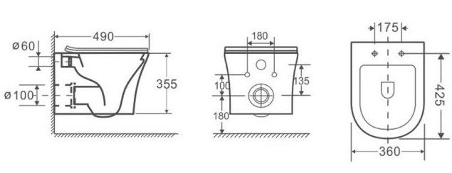 Режим смыва воды:определяется системой инсталляции