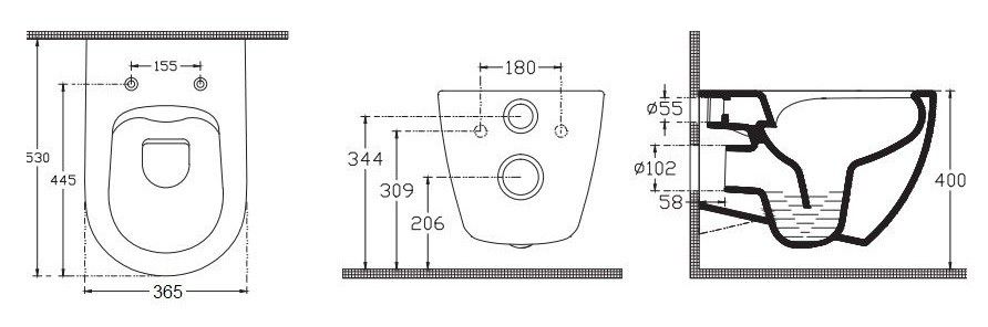 • Укороченный унитаз: