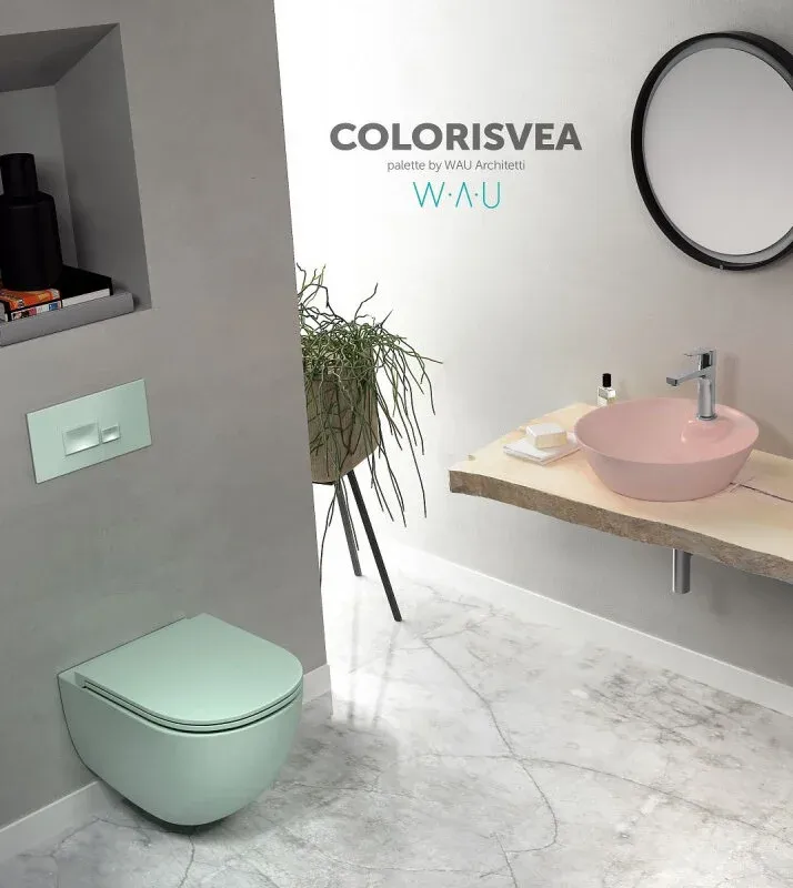 Подвесной унитаз Isvea Infinity 10NF02001SV-2T безободковый крышка микролифт мятно-зелёный матовый купить