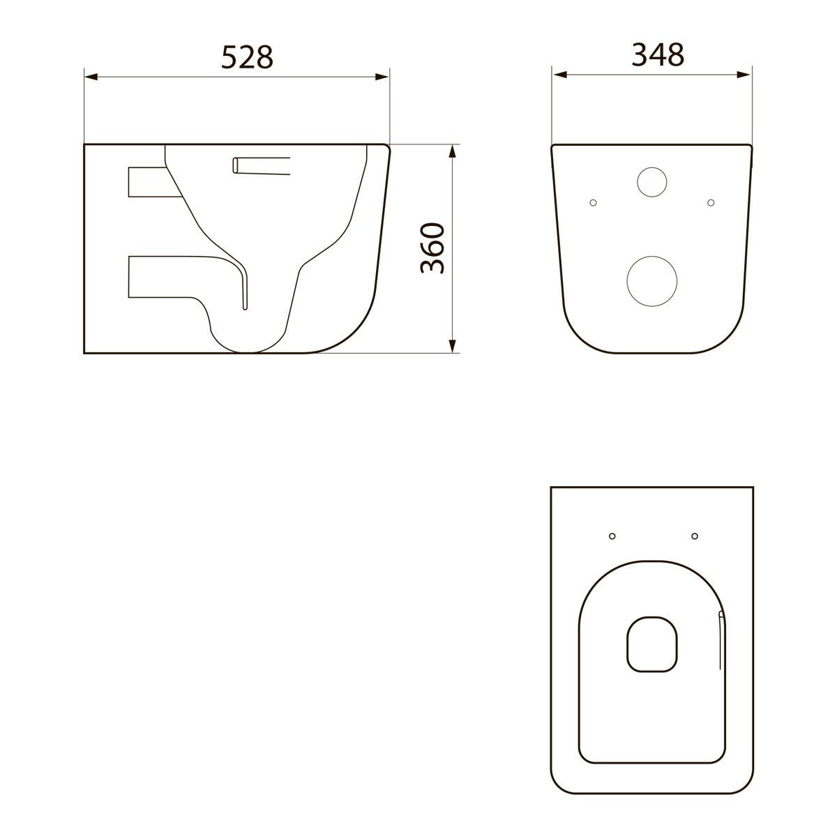 Комплектация унитаз настенный керамический безободковый; сиденье для унитаза из дюропласта ультратонкая легкосъемная с функцией плавного закрывания; инструкция/гарантийный талон
