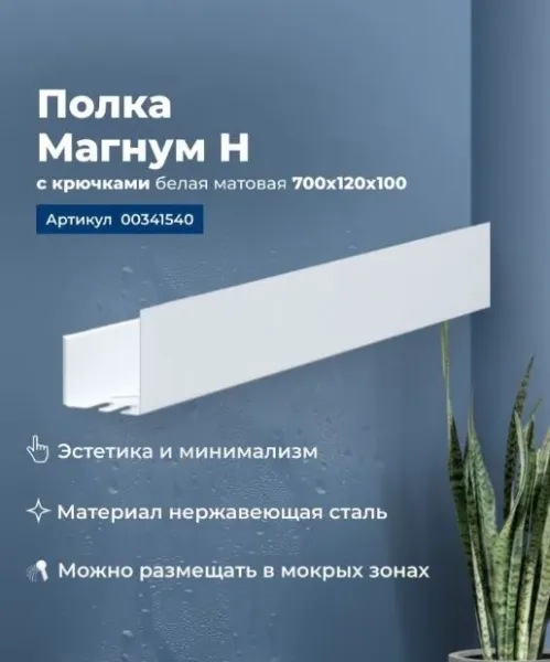 Полка Aquanet Магнум Н 70x12 белая матовая, с крючками — это компактное и стильное решение для организации пространства, которое сочетает в себе функциональность и современный дизайн. Вот ее основные характеристики и преимущества: