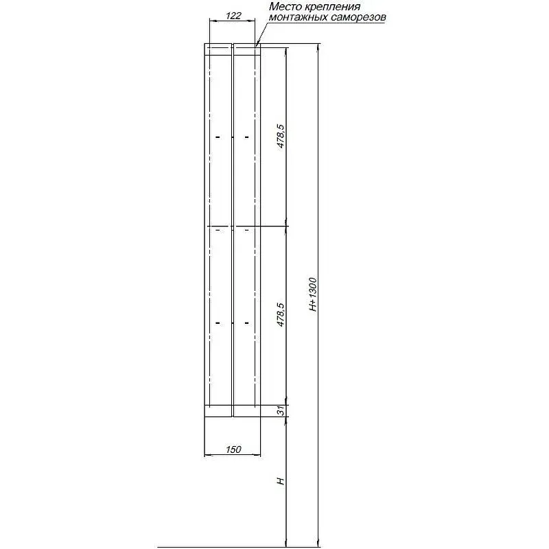 - Габариты (ШxВxД): 150x1000x120.5 мм.
