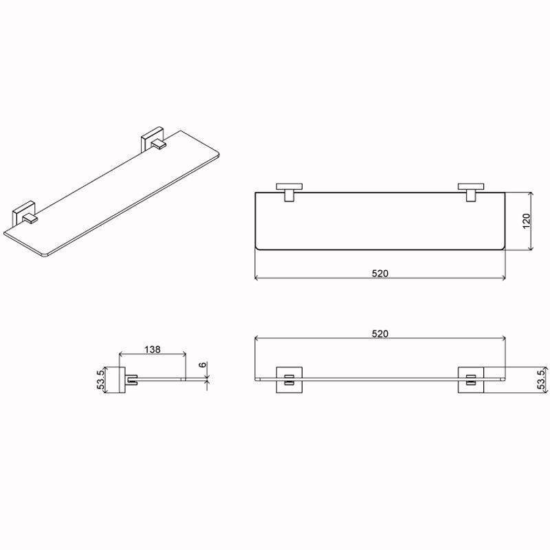 Полка AZARIO RINA AZ-87003 стеклянная 52 см