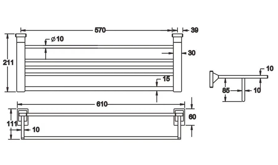 Полка для полотенец Rose RG1608H 61см чёрный купить