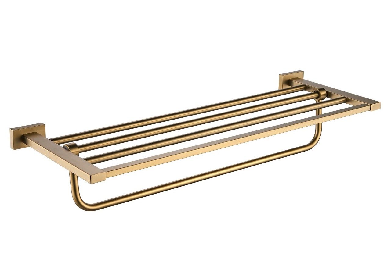 Полка для полотенец Shevanik SG5608G, золотой сатин.Метод крепления: шурупы.Материал: латунь.