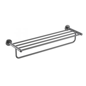 "Черное золото" - неизменно эффектный и привлекающий внимание цвет. Приглушенный мягкий оттенок черного, подчеркнет форму раковины или цвет мебели.Полка Timo Saona 13058 - практичный аксессуар, который дополнит интерьер в ванной комнате. Для сушки полотенец используют нижнюю перекладину, а верхняя полка является удобным местом для их хранения. Аксессуары для ванной комнаты и туалета - важные составляющие комфортной и продуманной обстановки. Цвет "черное золото" не капризен в уходе, на нем менее заметны загрязнения и мелкие царапины.