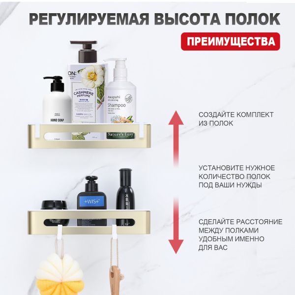 Полка для ванной комнаты Raglo R340.02.03 золотой сатин купить
