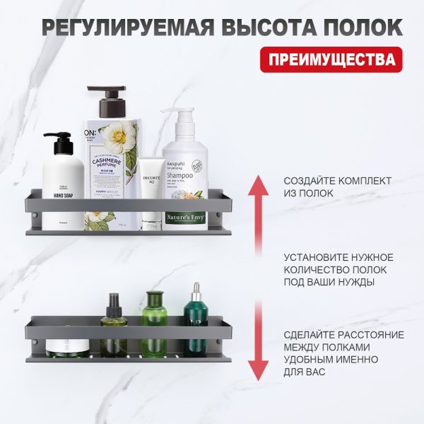 Полка для ванной комнаты Raglo R340.03.09, графит. Размер: 41x11,5x9 см. Тип крепления: на болтах. Материал: нержавеющая сталь
