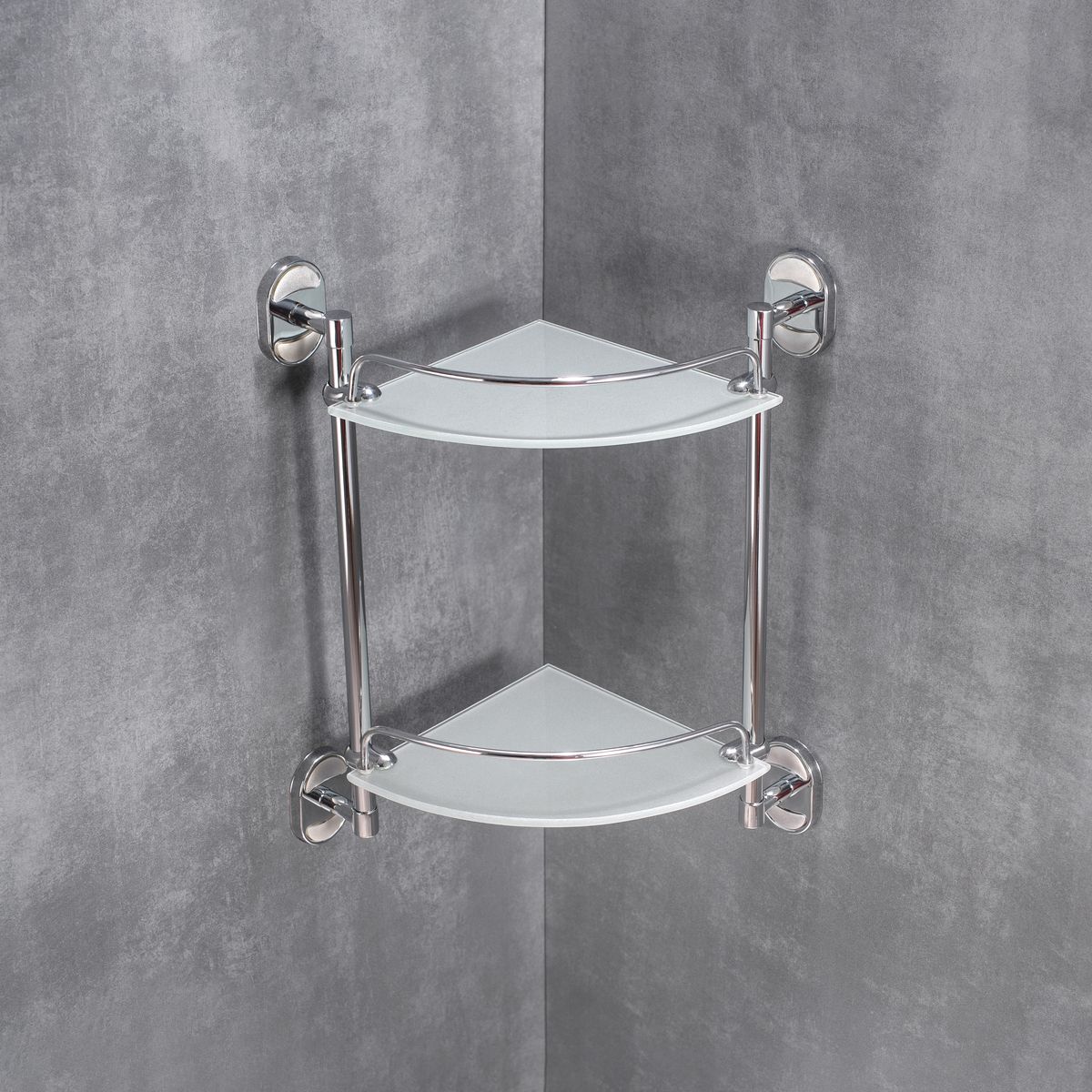 Полка для ванной комнаты РМС A9010 двойня угловая хром купить