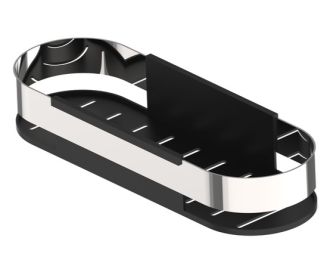 Овальная полка для ванной комнаты размером 300х128 мм вместит все необходимое для комфортного принятия душа. Внутри полки размещен гигиеничный короб – съемная вставка из прочного ABS-пластика в цвет внешнего корпуса, которая легко вытаскивается и моется, не ржавеет и не деформируется, не впитывает запахи. Изделие выполнено в трендовом черном цвете и станет ярким акцентом в любом интерьере.