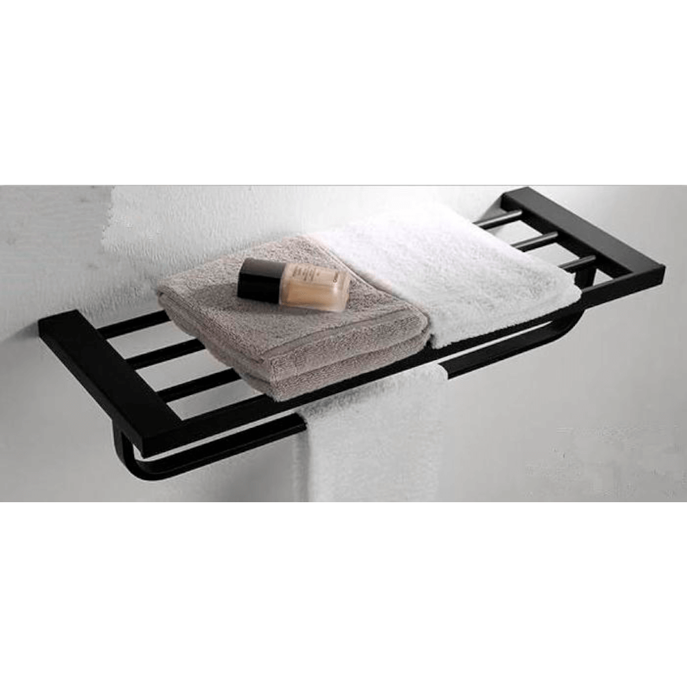 Полка с держателем полотенец Orans 7201000Серия аксессуаров для ванных комнат от немецкого производителя Orans. Коллекция, сочетающая в себе строгий черный цвет, простоту форм и надежность высококачественной нержавеющей стали. Изделия этой коллекции призваны стать завершающем элементом, формирующим дизайн вашей ванной комнаты.Стильная минималистичная полка в черном цвете для хранения полотенец.Материал: нержавеющая сталь