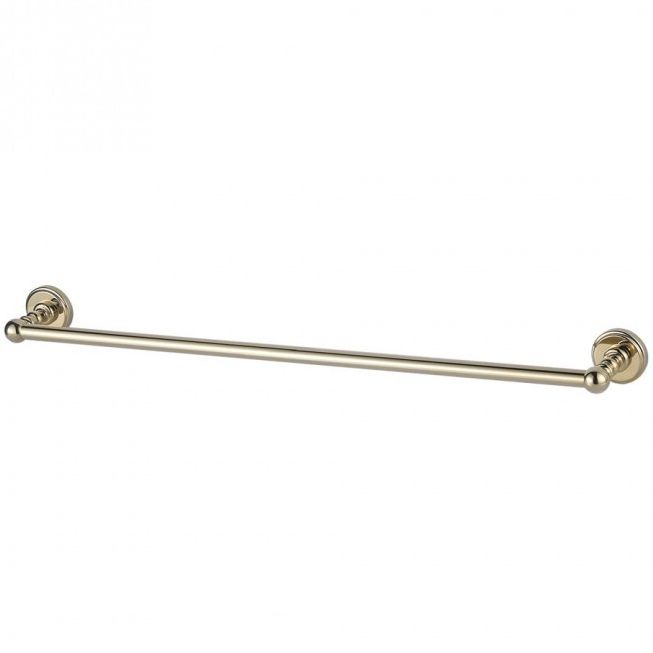 Держатель для полотенец Aquanet 4624 (60 см) - стильный аксессуар в золотой огранке. Ярким элементом в нем является живописная с точеными линиями деталь, которая с одной стороны является держателем для других составляющих модели, с другой – местом, в котором прячутся все крепления аксессуара к стене. Элемент, начинающийся с круглого основания, словно нанизывая на себя детали разных форм, завершается эффектным шаром. В данной модели таких элемента два и они выполняют роль держателя штанги для полотенец длиной 60 см. Аксессуар рассчитан на размещение одного полотенца. Для крепления к стене предусмотрена надежная система, скрытая от глаз в декоративных элементах.