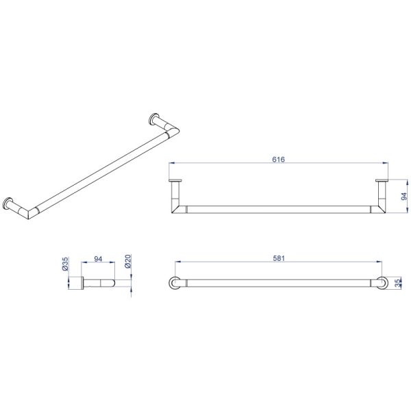 Полотенцедержатель AZARIO FORNY AZ-88301 трубчатый одинарный 60 см