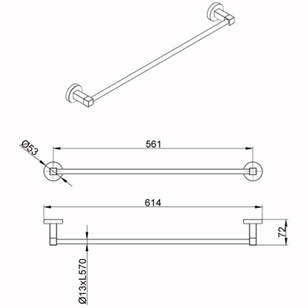 Полотенцедержатель AZARIO NESSY AZ-73101 трубчатый одинарный 60 см