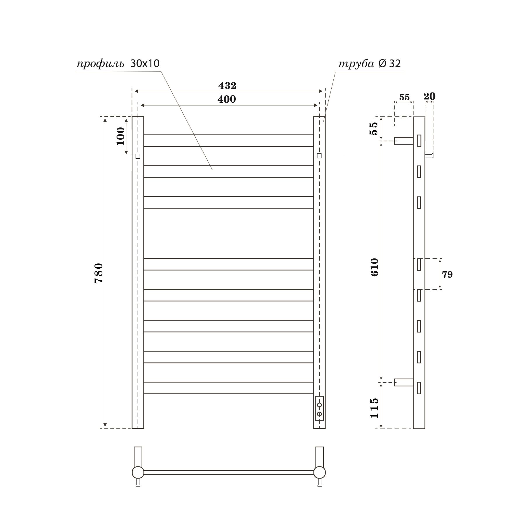 Полотенцесушитель электрический APEXTERMO Sfera SF10184GF 800x400 с крючками графит металлик купить