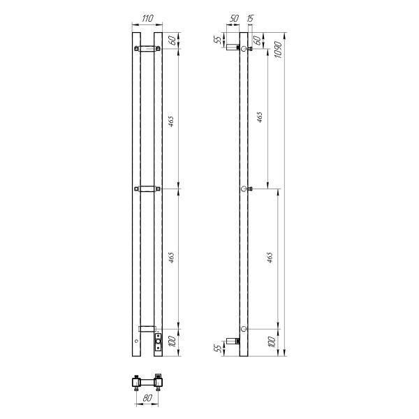 Полотенцесушитель электрический APEXTERMO Sirius SR10111BM 1100x80 с крючками черный матовый купить