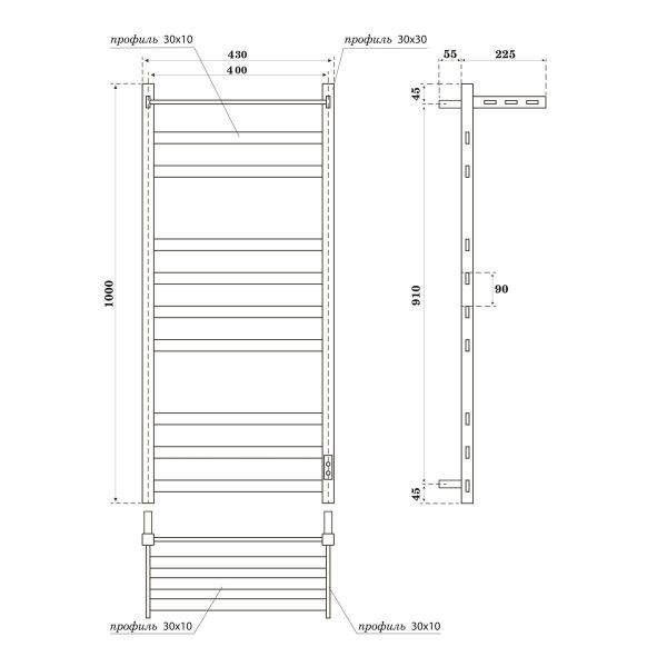 Полотенцесушитель электрический APEXTERMO Terra TR01104WM 1000x400 с полкой белый матовый