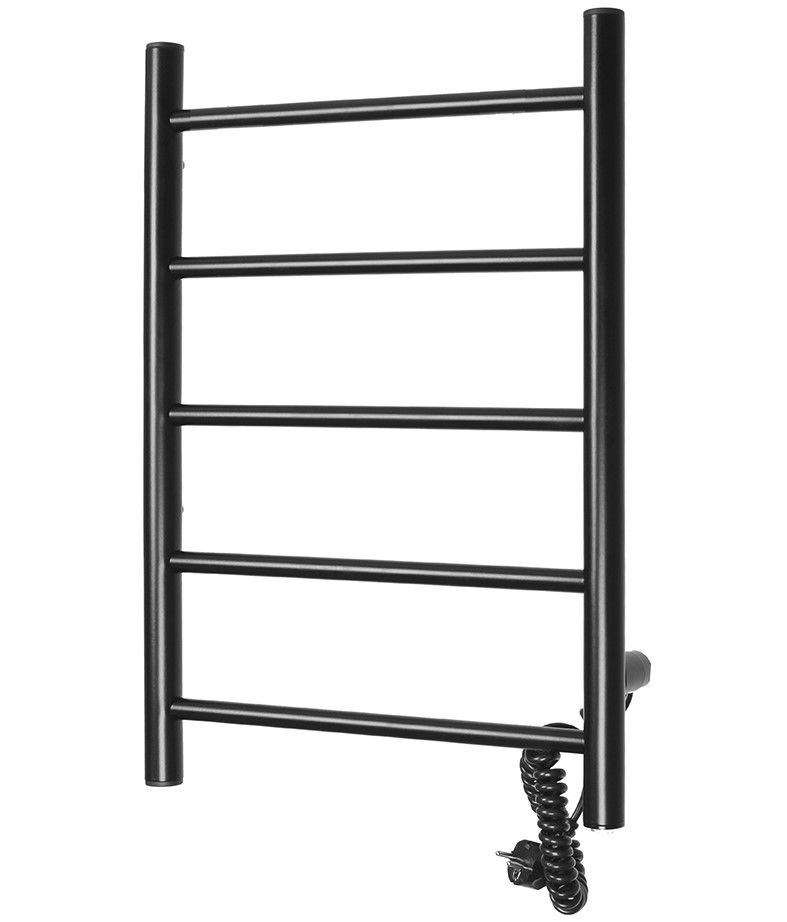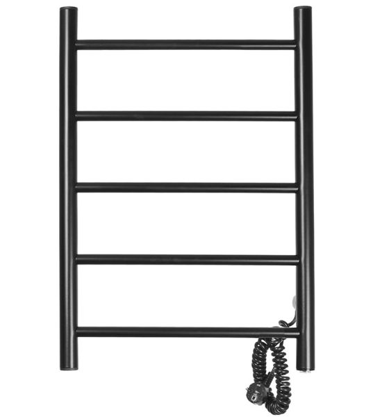 Полотенцесушитель электрический Domoterm Аврора 109-5 EK R/EK L, ширина 50 см, высота 70 см, подключение слева/справа, черный матовый, DMT 109-5 50x71 ЧРН EK R/DMT 109-5 50x71 ЧРН EK LЭлектрический полотенцесушитель с ТЭНом представляет собой современный обогревательный электроприбор из нержавеющей стали. Устройство потребляет небольшое количество электроэнергии и может работать на протяжении длительного периода времени без отключения от сети; является дополнительным источником отопления в комнате, можно использовать в ванных комнатах для сушки белья, полотенец. Полотенцесушители поставляются в сборе, укомплектованы монтажными стойками и готовы к установке. Толщина 1,5 мм. Вертикальные стойки имеют диаметр 32мм., горизонтальные перекладины выполнены из трубы диаметром 18мм