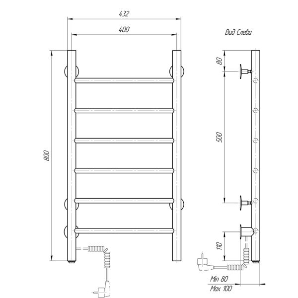 М/о расстояние (межосевое расстояние): 400Количество перекладин: 6Коллекция: АврораТип: электрическиеЦвет: черныйМощность, Вт: 53Ширина (мм): 400Высота (мм): 800Глубина (мм): 80/100Вес: 4,42Объем: 0,0495Тэн/подключение: слеваСтрана: РоссияГарантия: 2 года