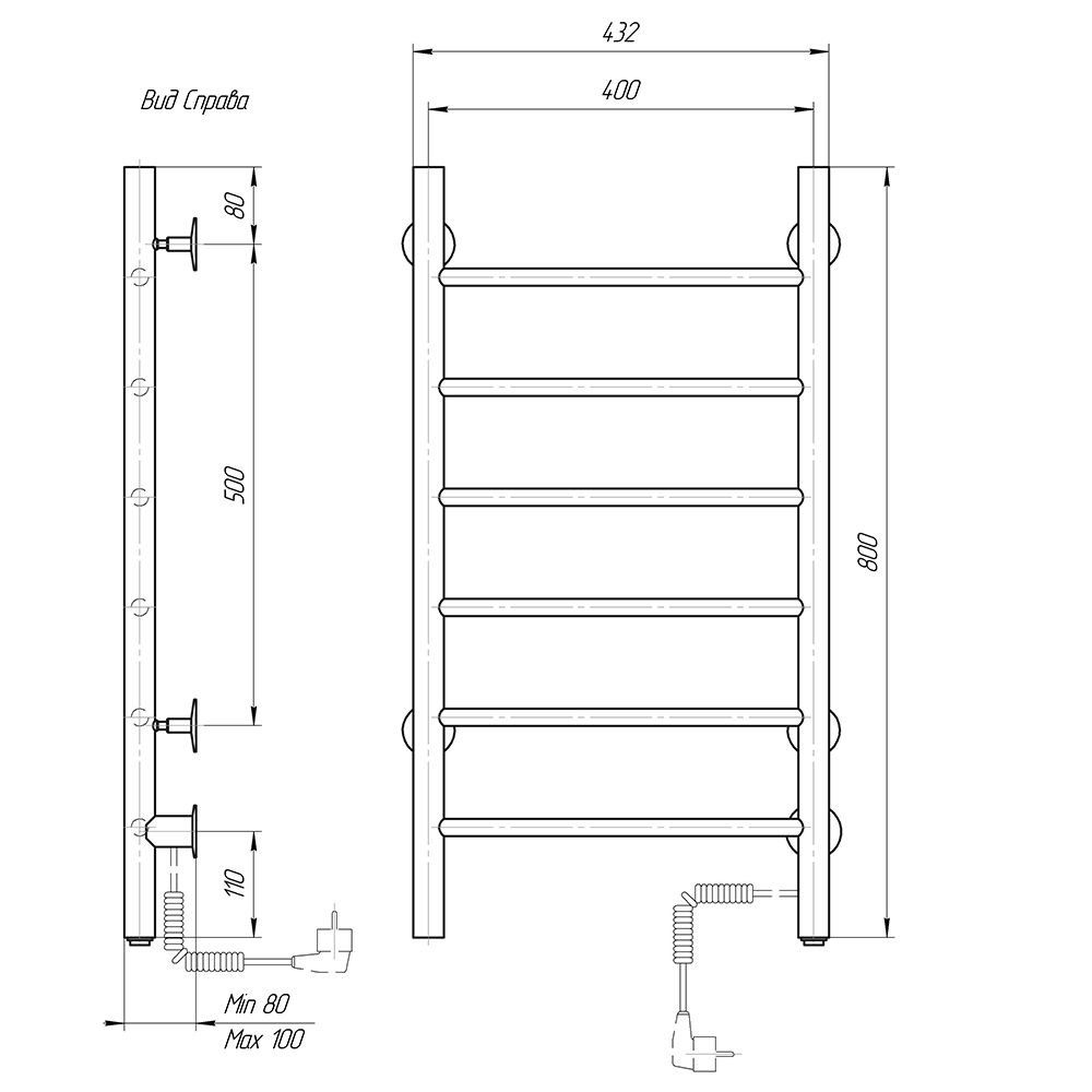 М/о расстояние (межосевое расстояние): 400Количество перекладин: 6Коллекция: АврораТип: электрическиеЦвет: черныйМощность, Вт: 53Ширина (мм): 400Высота (мм): 800Глубина (мм): 80/100Вес: 4,42Объем: 0,0495Тэн/подключение: справаСтрана: РоссияГарантия: 2 года