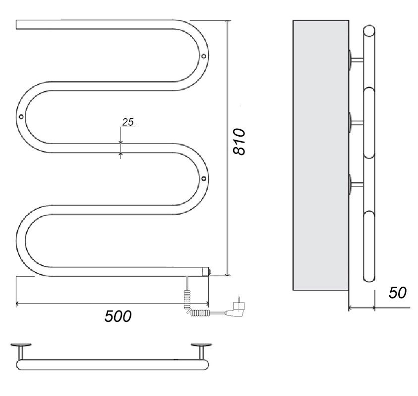 Электрический полотенцесушитель E-образный из нержавеющей стали.