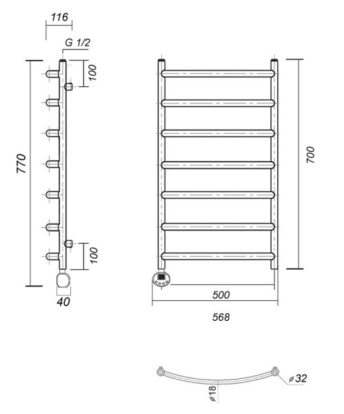 Количество перекладин: 7Коллекция: КалипсоТип: электрическиеЦвет: золотоМощность, Вт: 300Ширина (мм): 532Высота (мм): 700Глубина (мм): 105-95Вес: 6,2Объем: 0,061875Тэн/подключение: слеваСтрана: РоссияГарантия: 2 года
