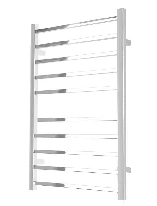 Количество перекладин: 10Коллекция: КвадроТип: электрическиеЦвет: хромМощность, Вт: 110Ширина (мм): 530Высота (мм): 860Глубина (мм): 90Вес: 5,1Объем: 0,0522Тэн/подключение: справаСтрана: РоссияГарантия: 2 года