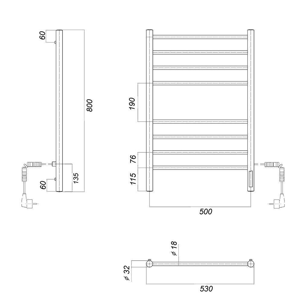 М/о расстояние (межосевое расстояние): 500Количество перекладин: 8Коллекция: МедеяТип: электрическиеЦвет: хромМощность, Вт: 110Ширина (мм): 532Высота (мм): 800Глубина (мм): 83-93Вес: 5,85Объем: 0,04Тэн/подключение: справаСтрана: РоссияГарантия: 2 года