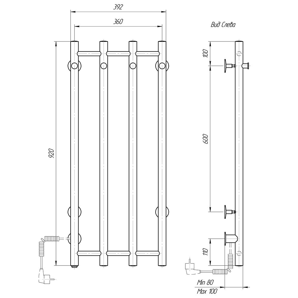 М/о расстояние (межосевое расстояние): 360Коллекция: ТангоТип: электрическиеЦвет: черныйМощность, Вт: 70Ширина (мм): 392Высота (мм): 920Глубина (мм): 110-120Вес: 5,64Объем: 0,0582Тэн/подключение: справаСтрана: РоссияГарантия: 2 года