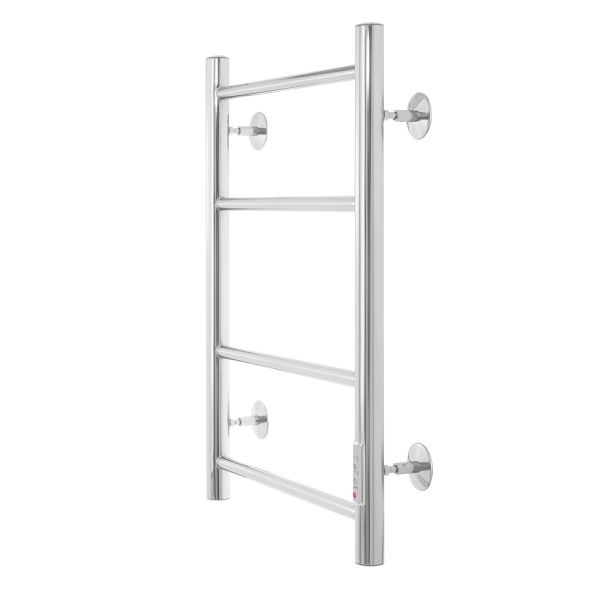 Energy Round – электрический полотенцесушитель с терморегулятором и таймером, выполненный в форме классической лесенки с круглыми в сечении перемычками. Нагревается за счет безопасного греющего кабеля в изоляции.Полотенцесушитель оснащен блоком управления с удобной регулировкой мощности (60%, 80% и 100%), а также времени отключения (через 2, 4 или 6 часов). Благодаря невысокой мощности имеет низкий расход электроэнергии. Подключается скрытым или наружным способом.Характеристики: