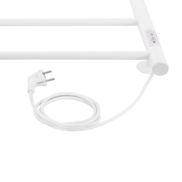 Energy Round – электрический полотенцесушитель с терморегулятором и таймером, выполненный в форме классической лесенки с круглыми в сечении перемычками. Нагревается за счет безопасного греющего кабеля в изоляции.Полотенцесушитель оснащен блоком управления с удобной регулировкой мощности (60%, 80% и 100%), а также времени отключения (через 2, 4 или 6 часов). Благодаря невысокой мощности имеет низкий расход электроэнергии. Подключается скрытым или наружным способом.Характеристики: