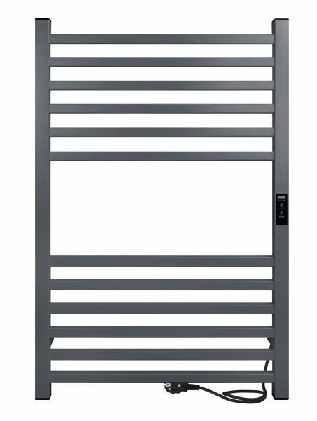 Полотенцесушитель электрический INDIGO Attic в расцветке «Magnetic Grey». Данная модель дополнена терморегулятором нагрева с тремя режимами: 40, 45, 50 градусов и таймером на отключение через 2, 4, 6 часов.