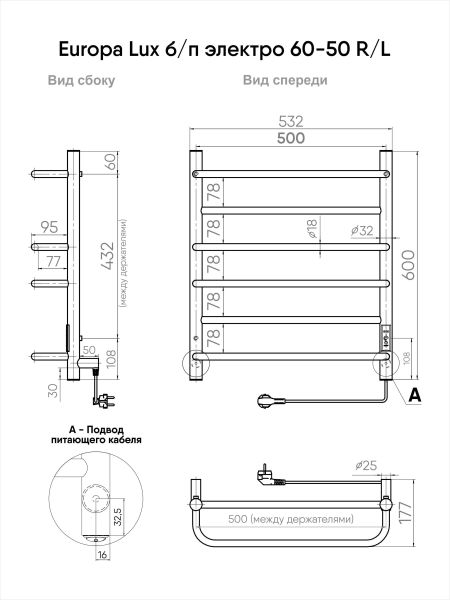 Специальная технология нагревательного кабеля защищает полотенцесушитель от перегрева что влияет на длительные сроки службы. В комплектации идут 4 телескопических держателя, комплект для монтажа и гарантийный паспорт. Полотенцесушитель INDIGO Europe Lux застрахован и имеет гарантию 3 года.
