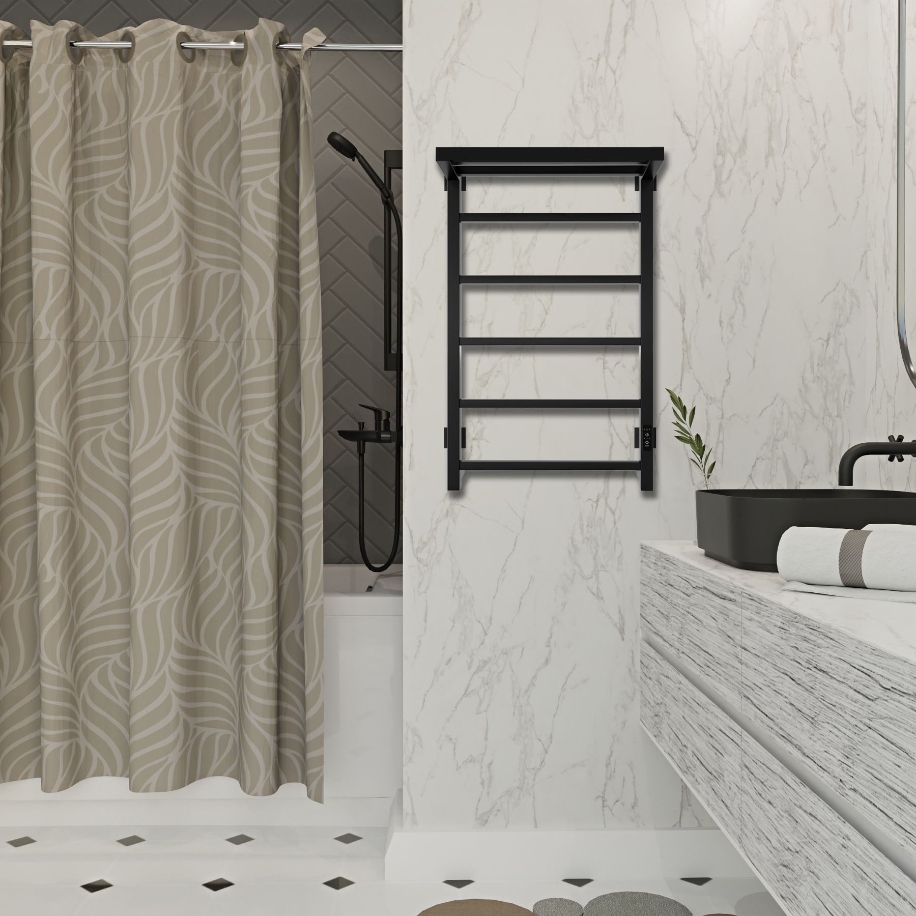Полотенцесушитель электрический Indigo Forma LEF80-50BRRt с полкой 80x50 см чёрный муар