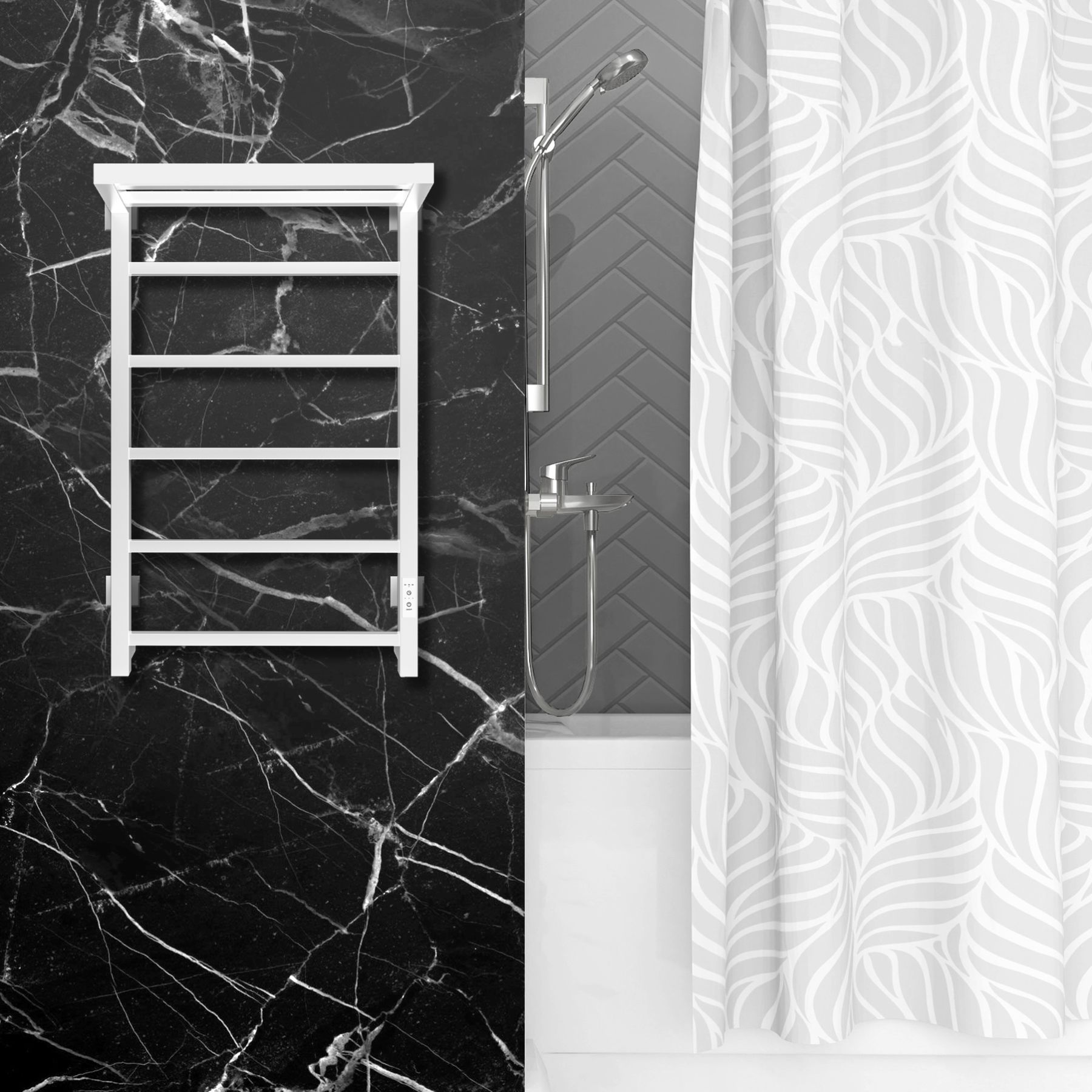 Компактный, красивый полотенцесушитель с терморегулятором в цвет. Полотенцесушитель дополнен полкой и в этом его преимущество, так как это дополнительное место для сушки полотенец, помогает организовать пространство в ванной комнате. Благодаря электрическому полотенцесушителю вы избавитесь от повышенной влажности в ванной, которая способствует появлению плесени. Модель имеет терморегулятор нагрева, у которого три режима: 40, 45, 50 градусов и таймер на отключение через 2, 4, 6 часов. Универсальность изделия предусматривает подключение через прямой провод или скрытое подключение без покупки дополнительного переходника. Длина прямого провода 1,1 метра. В комплектации идут 4 телескопических держателя, комплект монтажа и гарантийный паспорт на 3 года.