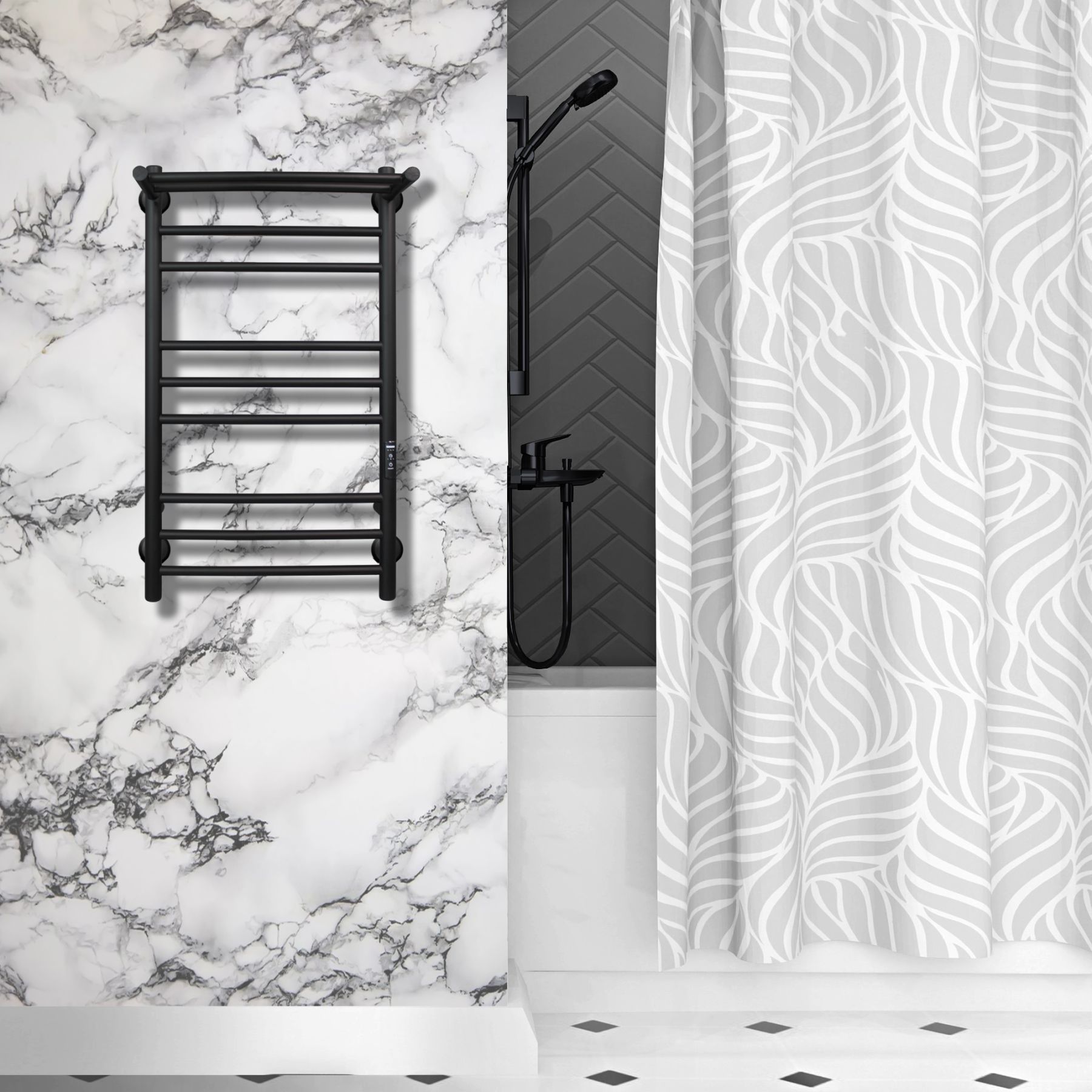 Полотенцесушитель электрический INDIGO Trinity Черный Муар с матовым покрытием.