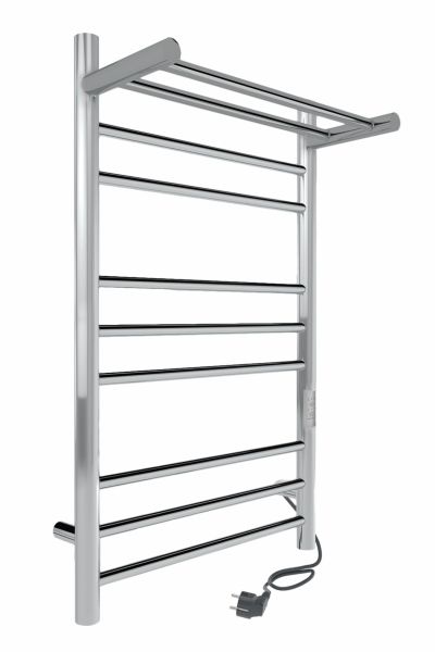 Дополнительная полка для полотенец, халатов и других мелочей обеспечит равномерную просушку, может использоваться как сушилка для полотенец. Полотенцесушитель марки INDIGO выполнен из нержавеющей стали. 8 перекладин и наличие полочки являются преимуществом и неоспоримым достоинством данной модели.