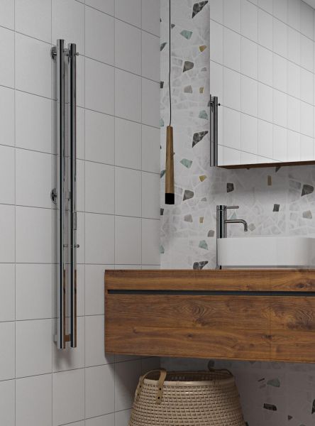 Регулятор нагрева имеет три режима - 40, 45, 50 градусов, а таймер можно настроить на отключение через 2, 4, 6 часов. Включать настенный полотенцесушитель можно по необходимости.