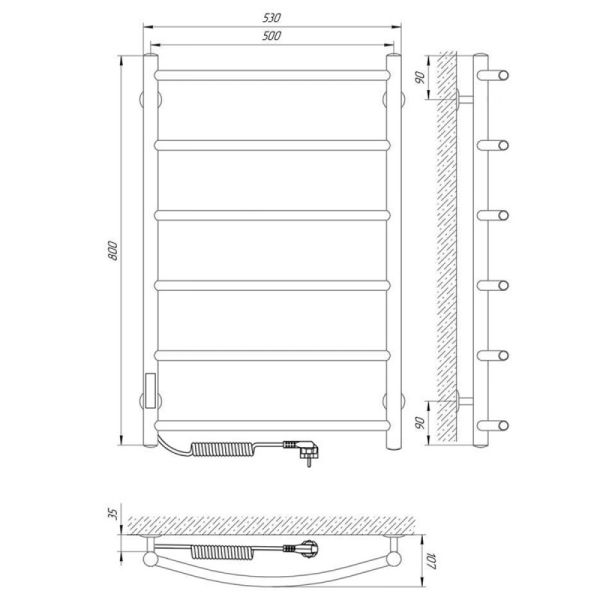 Модель: КлассикКод товара: 73207392Материал: сталь нержавеющая AISI304Диаметры и толщина: стойка Ø30, толщина 1,5 мм; перемычка Ø20, толщина 1 ммРегулятор: на стойкеТерморегулятор: даВозможность скрытого монтажа: даРазмещение шнура: справа (Также есть исполнение с левым подключением)Температура поверхности изделия*: 50±5°CНапряжение питания: 220 ВВес: 5,86 кгКомплектация: