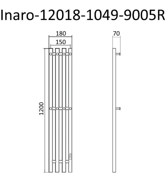 Полотенцесушитель электрический Маргроид Inaro-12018-1049-9005R правый 18x120см чёрный матовый