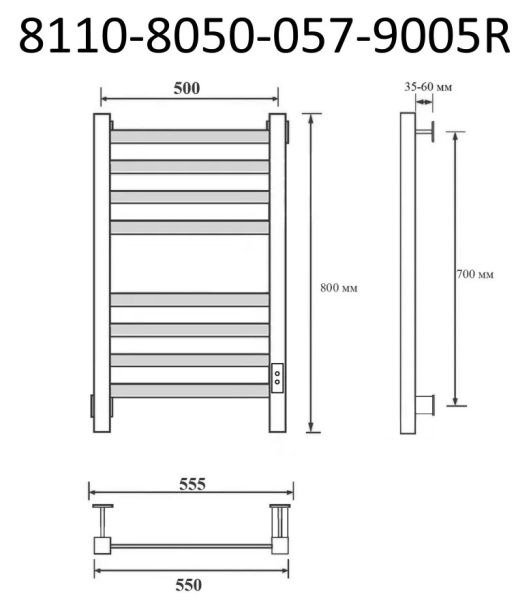 Полотенцесушитель электрический Маргроид В81/10 Р80*50 чёрный матовый 8110-8050-1081-9005R