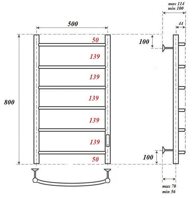 Полотенцесушитель электрический Point Афина PN04858B П6 500x800 диммер справа, черныйКомплектация:Полотенцесушитель - 1 шт, кронштейны для крепления к стене - 3 шт, сетевой кабель - 1 шт, комплект скрытого подключения - 1 шт, паспорт/гарантийный талон - 1 шт
