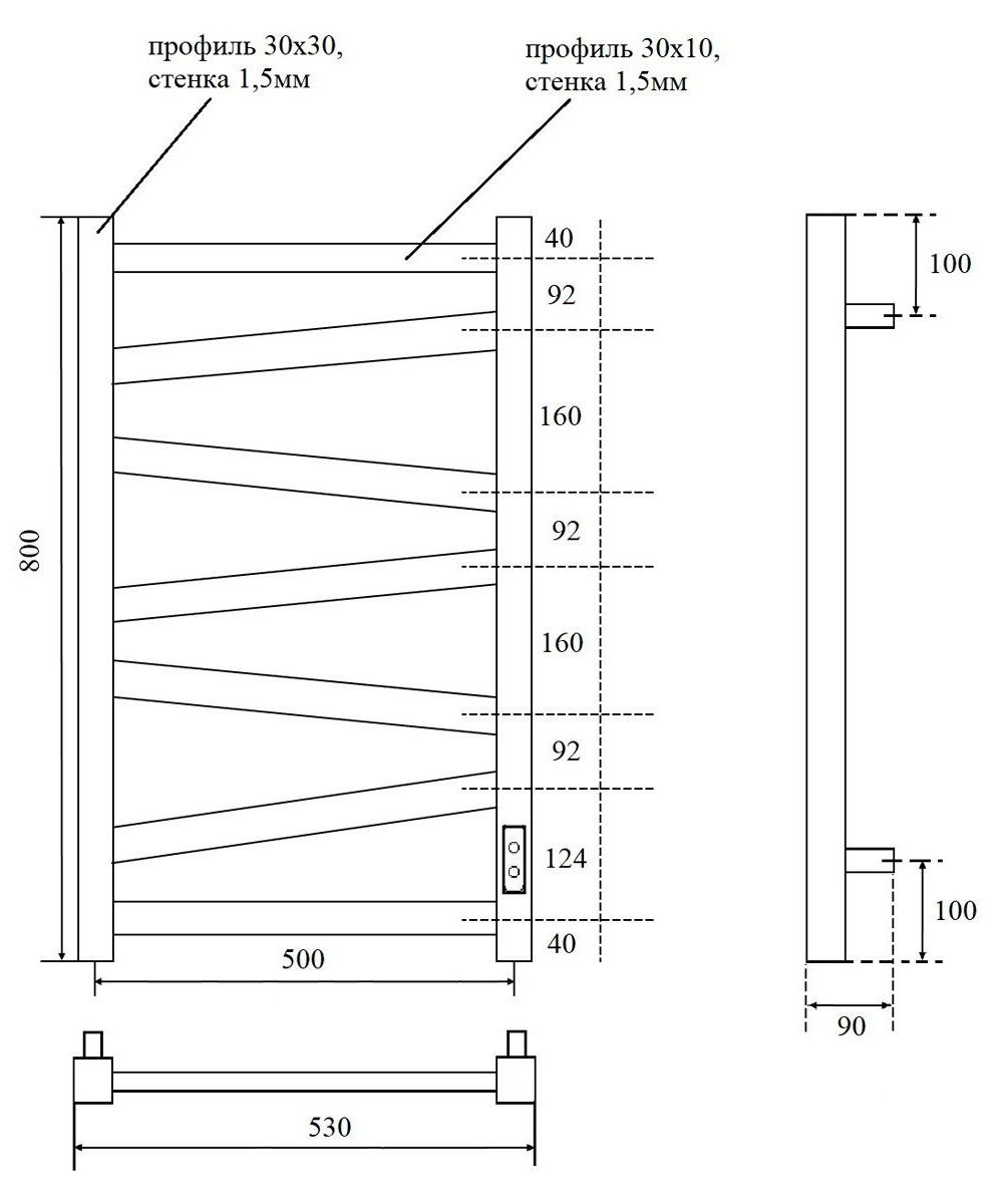 Электрические полотенцесушители Феникс в цвете черный матовый (RAL 9005) и белый матовый (RAL 9016) выполнены из конструкционной стали с толщиной стенки 1,5 мм в двух размерах 500x600 и 500х800.Полотенцесушители оборудованы блоками управления с таймером (3 режима - 2,4,6 часов) и возможностью регулировки температуры (3 температурных режима). Блок управления расположен на правой стойке. Подключение к электросети осуществляется при помощи кабель-вилки или скрытого подключения, которое позволяет легко и просто убрать видимые провода.Комплектация:Полотенцесушитель - 1 шт,кронштейны для крепления к стене - 3 шт,сетевой кабель - 1 шт,комплект скрытого подключения - 1 шт,паспорт/гарантийный талон - 1 шт